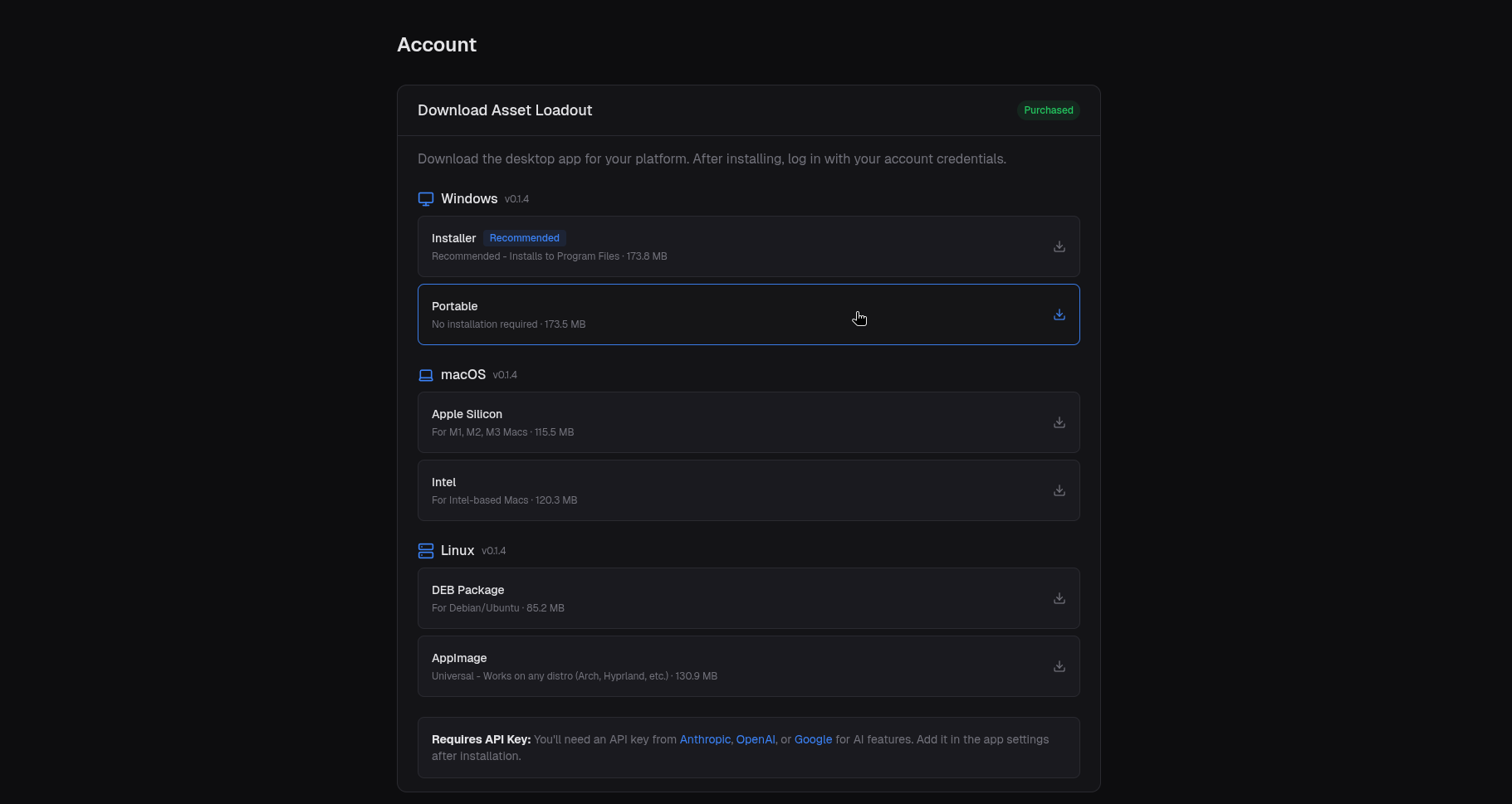 Installation tip: On Linux, make the AppImage executable with chmod +x Asset.Loadout.AppImage