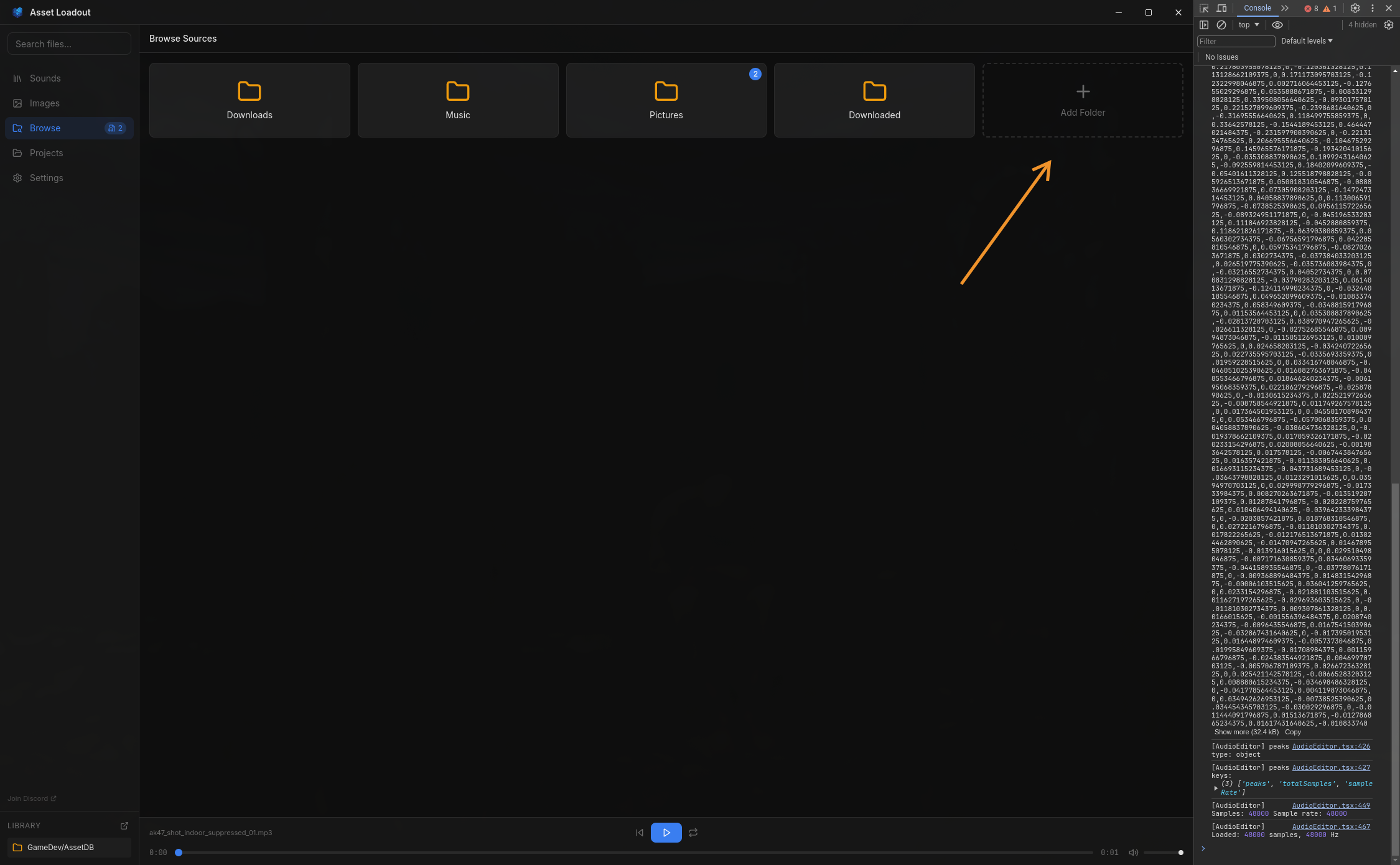 Auto-detection: Asset Loadout will automatically detect new audio and image files in these folders and show you a "new files" badge in the Browse view.